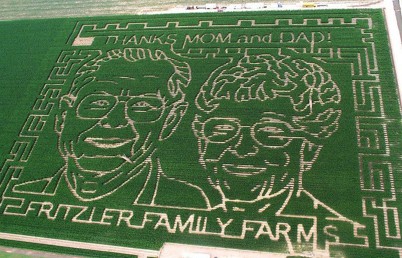 Here are a few photos of corn mazes that Glen and Pam Fritzler created at their farm in LaSalle, Colorado.Their farm is known as the "Fritzler's Maze." The first mazes appeared at the farm of Glen and Pam back in 2000 when the farm was struggling for survival. Maze was a good investment. It is open to visitors only 7 weeks in the autumn months, and it is maintained by specifically hired for this period almost 200 people.